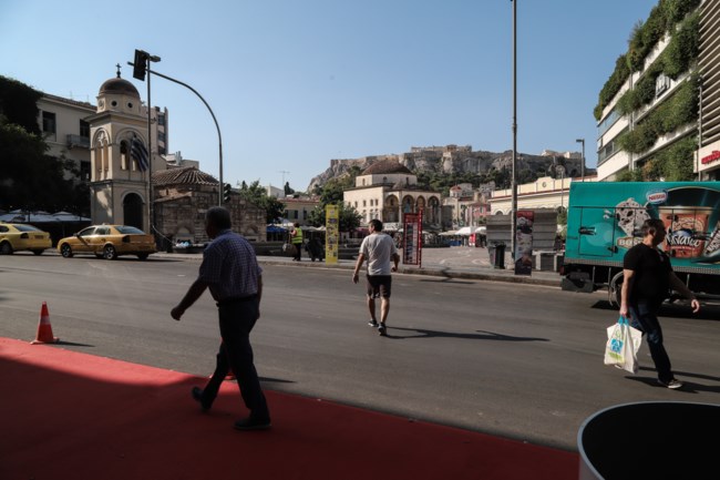 Από το βράδυ της Κυριακής πραγματοποιούνται εργασίες για την επέκταση του "Μεγάλου Περιπάτου" στο εμπορικό τρίγωνο της Αθήνας και την Πλάκα.