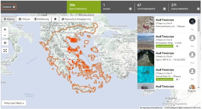Φέτος, έχουν παρατηρηθεί σε διάφορες περιοχές του Αιγαίου αλλά και του Ιονίου, ενώ χειμερινοί κολυμβητές ανέφεραν ότι έβλεπαν αυτό το είδος μέδουσας και τον χειμώνα. Ωστόσο, η παρουσία τους αυξάνεται κατά πολύ το καλοκαίρι καθώς ευνοούνται οι συνθήκες αναπαραγωγής της λόγω της υψηλότερης θερμοκρασίας της θάλασσας.