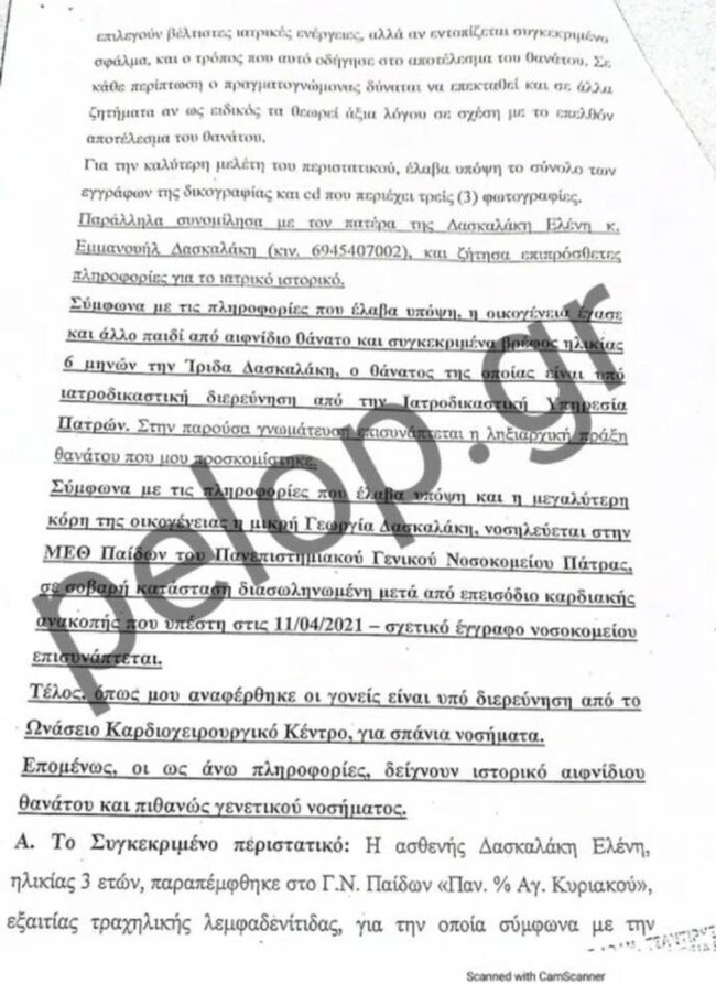 Την ώρα που εξετάζονται όλα τα δεδομένα, με τις αρχές να αφήνουν όλα τα ενδεχόμενα ανοιχτά, ακόμα και το εκείνο της εγκληματικής ενέργειας, έρχονται στο φως οι δύο εκθέσεις που συντάχθηκαν από τους ιατροδικαστές μετά τον θάνατο της 3,5 Μαλένας που έφυγε από τη ζωή το 2019 και της 6 μηνών Ίριδας, η οποία πέθανε αιφνιδίως στο σπίτι που βρισκόταν με τη μητέρα και τη θεία της, τον Μάρτιο του 2021.