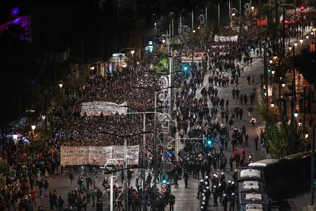 Μετά το τέλος της πορείας, μέρος των διαδηλωτών κινήθηκε προς τα Εξάρχεια, με τις δυνάμεις των ΜΑΤ να τους ακολουθούν.
