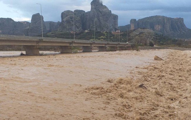 Όπως καταγράφει το trikalavoice.gr ο Πηνειός ποταμός κατεβαίνει ορμητικός φέροντας μεγάλες ποσότητες νερού και φερτών υλικών από τα ορεινά της περιοχής μας. Έχει απλωθεί σε όλο το μήκος της κοίτης του στη γέφυρα της Διάβας, στο σημείο που είχε καταρρεύσει πριν από 5 χρόνια τέτοια εποχή η παλιά γέφυρα.