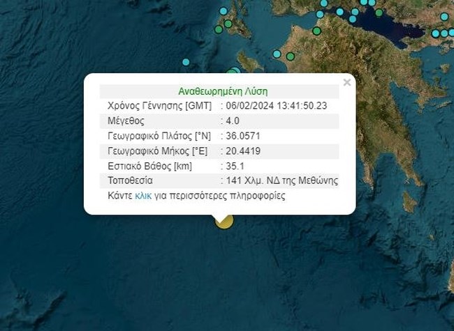 Σεισμική δόνηση μεγέθους 4 βαθμών της κλίμακας Ρίχτερ σημειώθηκε, το μεσημέρι της Τρίτης κοντά στη Μεθώνη, στα ανοιχτά της Μεσσηνίας.