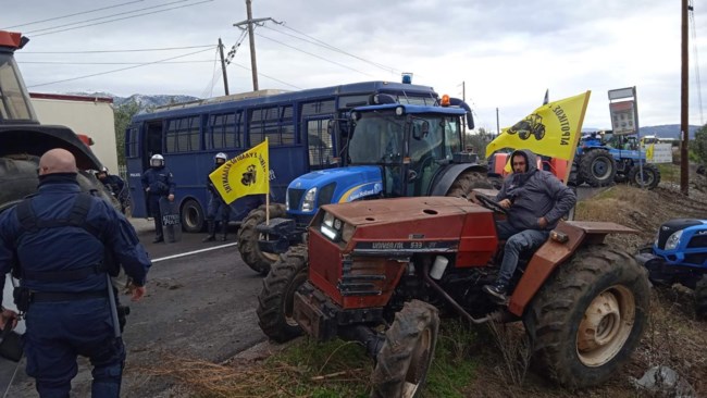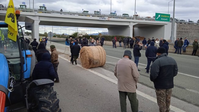 Εχουν παρατάξει τρακτέρ κατά μήκος της Εθνικής Οδού που παραμένει συμβολικά κλειστή και στα δύο ρεύματα.