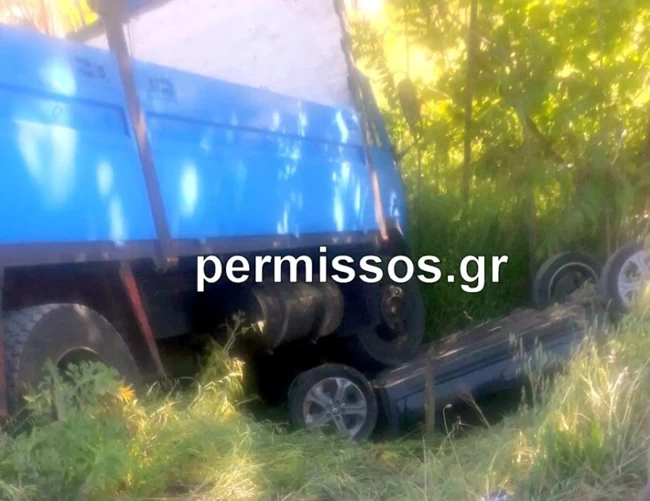 Το αυτοκίνητο αναποδογύρισε και καρφώθηκε κυριολεκτικά κάτω από το φορτηγό.
