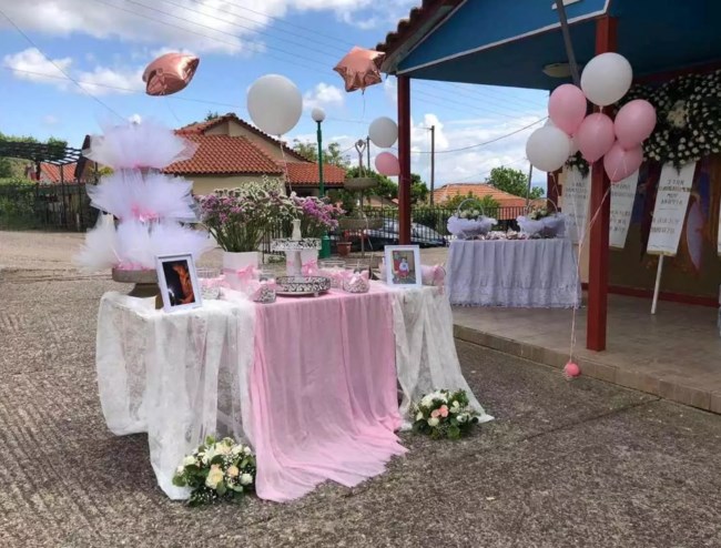 Οι γονείς του παιδιού, που ακόμη δεν μπορούν να συνειδητοποιήσουν ότι το αγγελούδι τους "έφυγε" τόσο άδικα από τη ζωή ζητά απαντήσεις. Την αποχαιρέτησαν με λευκά λουλούδια, ροζ μπαλόνια, μοίρασαν μπομπονιέρες, κουφέτα και γλυκά.