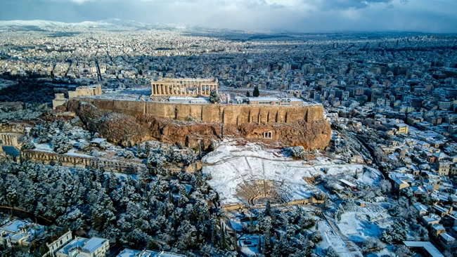 Όπως βλέπουμε από το βίντεο drone της ομάδας "Up Stories", αλλά και από τις εντυπωσιακές εικόνες του πρακτορείου Eurokinissi, στα λευκά έχουν ντυθεί η Ακρόπολη, το Καλλιμάρμαρο, το Ζάππειο, οι στύλοι του Ολυμπίου Διός, αλλά και ο λόφος του Λυκαβηττού, με το θέαμα να είναι μαγικό.
