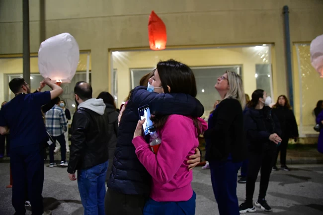 Μία εβδομάδα μετά το σιδηροδρομικό δυστύχημα στα Τέμπη που κόστισε τη ζωή σε δεκάδες ανθρώπους, ο ουρανός πάνω από το Πανεπιστημιακό Νοσοκομείο της Λάρισας γέμισε με αναμμένα φαναράκια.