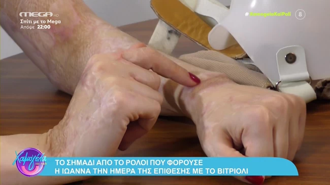 "Βγάζω τη μάσκα για να φάω και να κάνω μπάνιο. Την φοράω όλη την μέρα και για τον ύπνο. Στον ύπνο φοράω μόνο την υφασμάτινη, για να μπορώ να κοιμάμαι. Έχω ουλές στο πρόσωπο, στον λαιμό μου και στα χέρια. Στο μάτι μου κάνω ειδική περιποίηση γιατί κινδύνεψε. Οι συνήθειες μου έχουν αλλάξει στο 100%, έχουν προσαρμοστεί στα τραύματά μου", τόνισε η Ιωάννα Παλιοσπύρου.