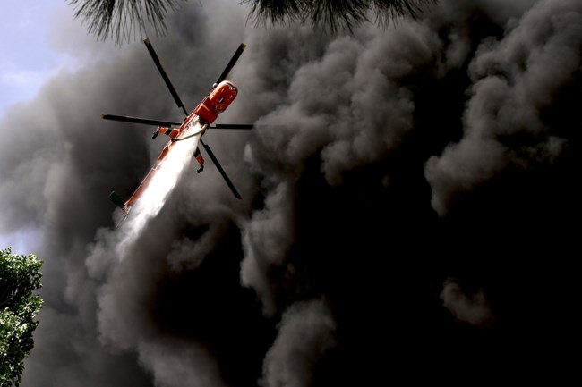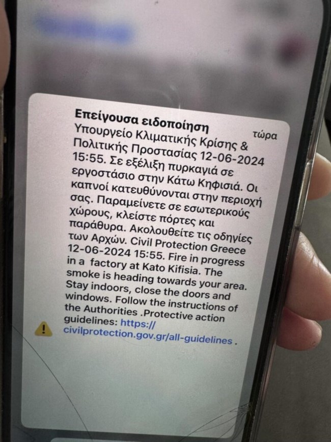 Όπως γίνεται γνωστό, έχει σταλεί 112 στους κατοίκους της περιοχής εξαιτίας των πυκνών καπνών να έχουν κλειστά πόρτες και παράθυρα.