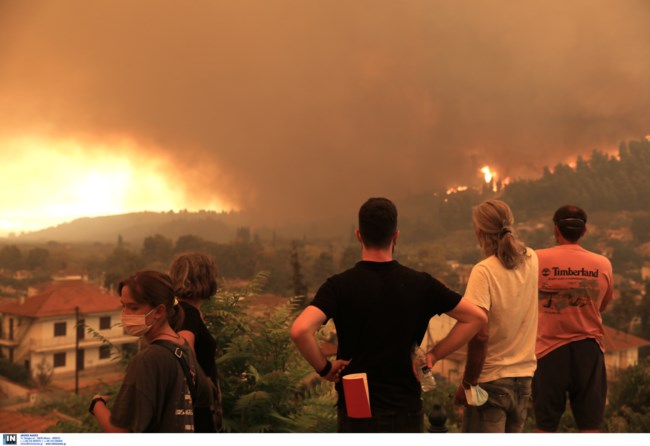 Σε κοντινή απόσταση από την Ιστιαία έχει φτάσει η φωτιά που μαίνεται για έβδομη ημέρα στην Εύβοια και η οποία τρέχει με μεγάλη ταχύτητα. Όλοι περιμένουν τα εναέρια μέσα, ενώ πυκνοί καπνοί έχουν απλωθεί πάνω από την πόλη.