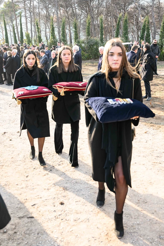 Στο φέρετρο τοποθετήθηκαν και τα μετάλλια και τα παράσημα του Κωνσταντίνου, όπως φαίνεται και στη φωτογραφία από τη Eurokinissi.