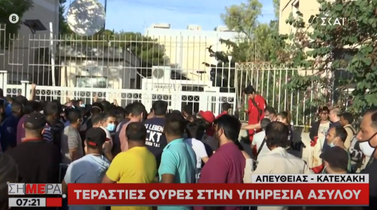 Το αδιαχώρητο επικρατούσε λίγο πριν τις 7.30 το πρωί της Τετάρτης στην υπηρεσία Ασύλου και Μετανάστευσης στην Κατεχάκη, όπως μετέδωσε η τηλεόραση του ΣΚΑΙ.