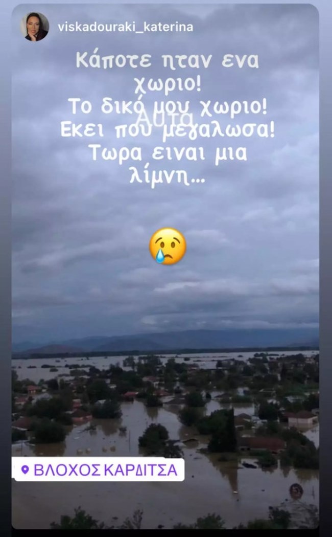 "Κάποτε ήταν ένα χωριό. Το δικό μου χωριό. Εκεί που μεγάλωσα! Τώρα είναι μία λίμνη", σε story που ανέβασε στον προσωπικό λογαριασμό του στο Instagram. Ενώ σε βίντεο που συνοδεύουν την ανάρτηση φαίνεται η τραγική κατάσταση που επικρατεί στο χωριό του.