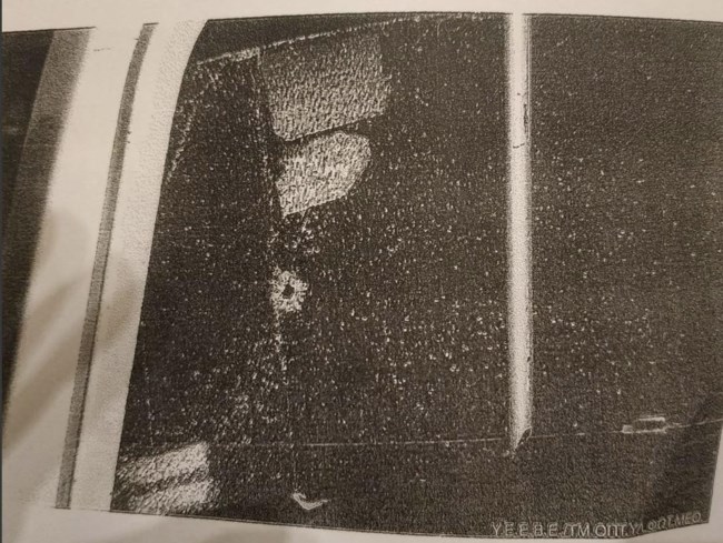 Όπως ανέφερε, πυροβόλησε δύο φορές, μία στον αέρα και άλλη μία στοχεύοντας "χαμηλά στο αγροτικό όχημα". Κατέθεσε, ωστόσο, ότι δεν μπορούσε να στοχεύσει με ακρίβεια, καθώς η μοτοσικλέτα ήταν εν κινήσει και κρατούσε το όπλο μόνο με το ένα χέρι.