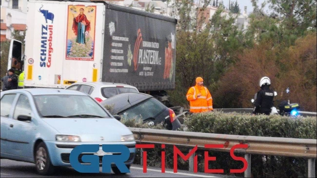 Τροχαίο ατύχημα έλαβε χώρα το μεσημέρι της Τετάρτης 30 Νοεμβρίου στον περιφερειακό της Θεσσαλονίκης με μια νταλίκα να συγκρούεται με Ι.Χ, υπό αδιευκρίνιστες συνθήκες, με το μεγάλο όχημα να διπλώνει, προκαλώντας προβλήματα στην κυκλοφορία των οχημάτων.