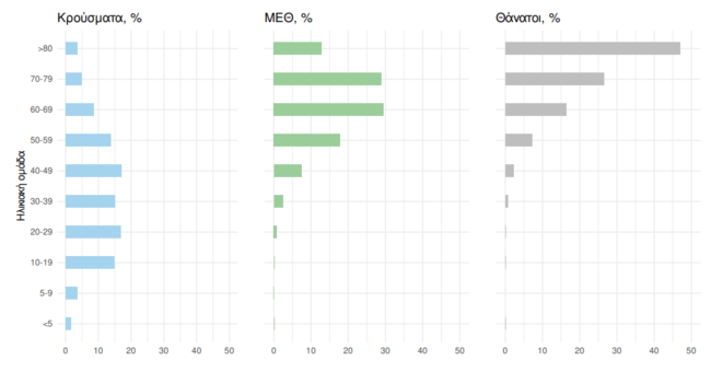 Η διάμεση ηλικία των κρουσμάτων είναι 38 έτη (εύρος 0.2 έως 106 έτη), ενώ η διάμεση ηλικία των θανόντων είναι 78 έτη (εύρος 0.2 έως 106 έτη).