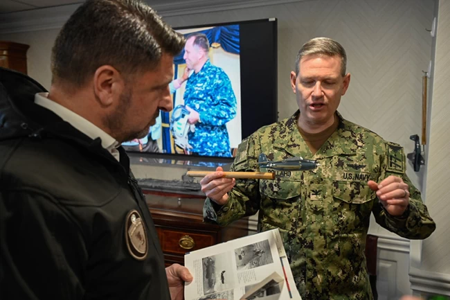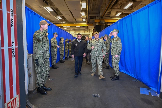 Επίσης, ο Νίκος Χαρδαλιάς ξεναγήθηκε στα βασικά διαμερίσματα του αεροπλανοφόρου και συνομίλησε με μέλη του πληρώματός του.