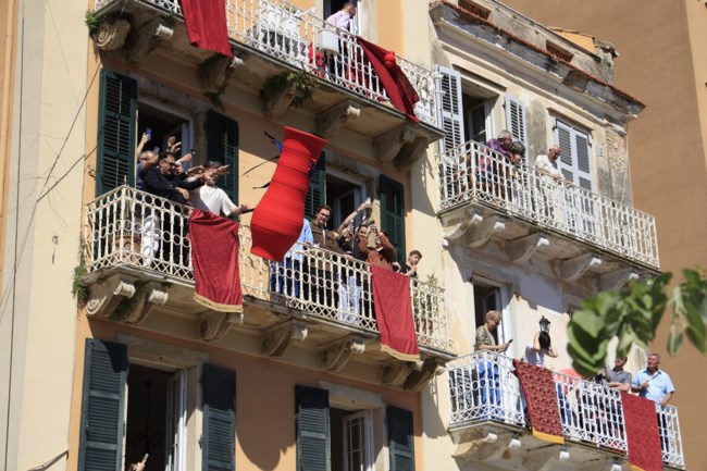 Πρόκειται για ένα έθιμο γνωστό στην υφήλιο, η μεγαλειότητα του οποίου προσελκύει πλήθος κόσμου στο νησί που έχει πολλά και μοναδικά πασχαλινά έθιμα. Το έθιμο χρονολογείται από τα χρόνια της Ενετοκρατίας, όταν η Ανάσταση επιτρεπόταν στους Κερκυραίους να γιορτάζεται μόνο κατά τη διάρκεια της ημέρας και πραγματοποιείται αμέσως μετά το πέρας της λιτανείας του Αγίου Σπυρίδωνα.