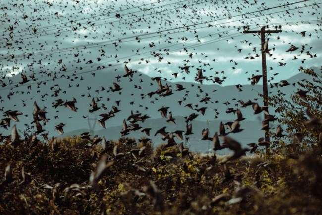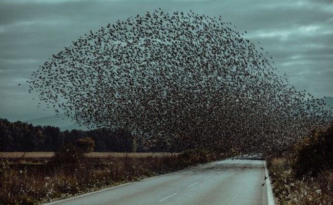 Ένα τεράστιο σμήνος από ψαρόνια, γνωστά και ως γκαραβέλια, κάνουν μία ρυθμική βόλτα πάνω από την επαρχιακή οδό Λαμίας - Λειβαδιάς, στος ύψος της Χαιρώνιας.