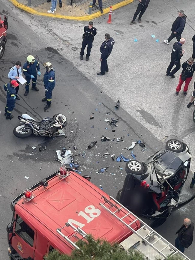Από τη σφοδρή σύγκρουση, ο οδηγός της μηχανής πετάχτηκε και έπεσε μέσα στο αυτοκίνητο, το οποίο ανατράπηκε. Ο οδηγός του Smart κατάφερε να βγει μόνος από το αυτοκίνητο, ο οδηγός της μηχανής δεν τα κατάφερε και έχασε τη ζωή του.