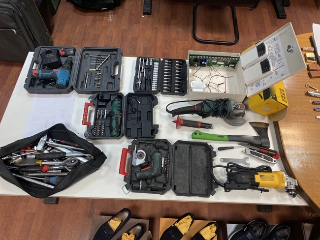 Από τις έρευνες που πραγματοποιήθηκαν βρέθηκαν και κατασχέθηκαν, μεταξύ άλλων, πλήθος ηλεκτρικών και διαρρηκτικών εργαλείων, κάνη μακρύκαννου όπλου, 2 αεροβόλα όπλα, 2 διακοσμητικά πιστόλια και 2 μαχαίρια, πλήθος διάφορων ασημικών, οικιακών συσκευών, κινητών τηλεφώνων, φωτογραφικών μηχανών ηλεκτρονικών συσκευών, φορητών υπολογιστών, ρολογιών και πορτοφολιών, χρυσά και ασημένια κοσμήματα, το χρηματικό ποσό των 7.863 ευρώ,4 χρυσές λίρες Αγγλίας, κάρτες ανάληψης διαφόρων τραπεζών στην Ελλάδα και το εξωτερικό, καθώς και μικροποσότητα κάνναβης.