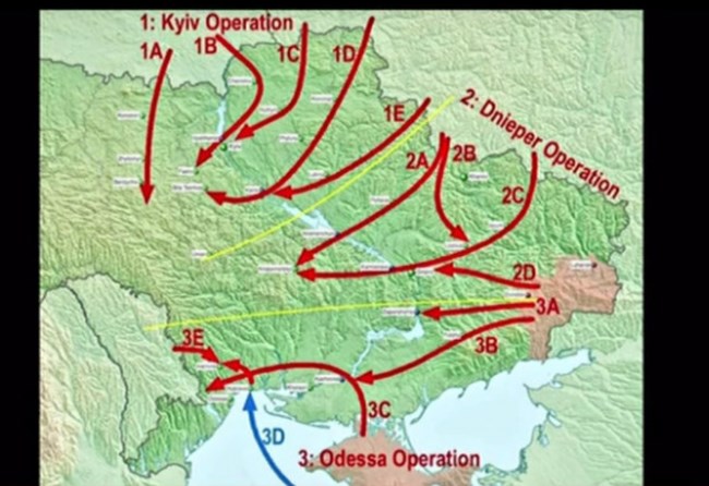 Η Ρωσία πραγματοποιεί ταυτόχρονη επίθεση στην Ουκρανία από τρία σημεία. Στρατιωτικές επιχειρήσεις είναι σε πλήρη εξέλιξη από τα βόρεια της Ουκρανίας προς Χάρκοβο, από τα ανατολικά προς Μαριούπολη (Ντονέτσκ) και από τα βορειοανατολικά μέσω Λευκορωσίας προς το Κίεβο.