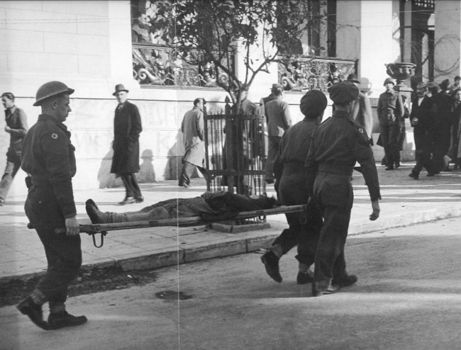 Παράλληλα ο στρατηγός Σκόμπυ προέβη σε διάγγελμα, ενώ άμεσες προσπάθειες για πολιτική λύση απαγορεύτηκαν από τον Τσώρτσιλ.