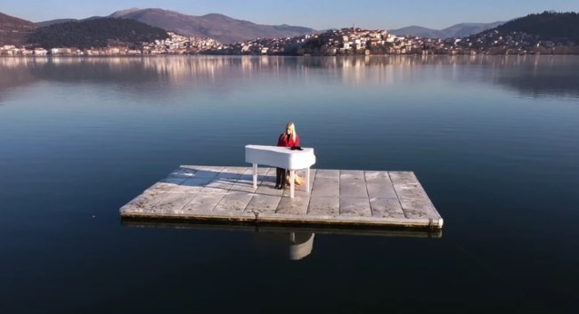 Το πιάνο μεταφέρθηκε με ειδική πλωτή πλατφόρμα μέχρι τη μέση της λίμνης, ενώ η Έλενα μετέβη εκεί με βάρκα. Στη συνέχεια, ξεκίνησε να παίζει τα αγαπημένα της κομμάτια, δημιουργώντας μια μαγευτική ατμόσφαιρα.