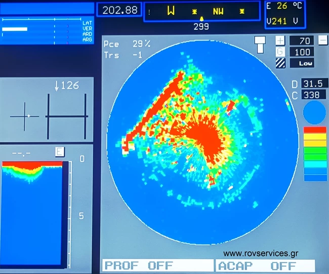 Το βάθος τρόπιδας σε περισκοπικό βάθος ήταν 34 πόδια (10,36 μέτρα)