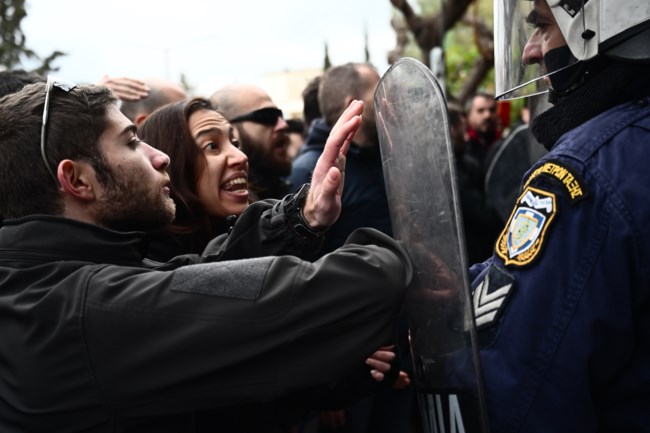 Τα επεισόδια συνεχίστηκαν και έξω από το ΑΤ Ζωγράφου, την ώρα που μετέφεραν την Ι. Κολοβού και τον γιο της στην Ευελπίδων!