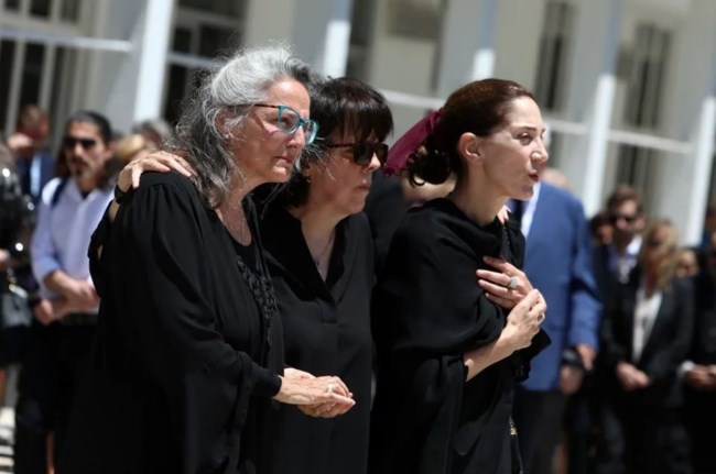 Ο φωτογραφικός φακός αποτύπωσε το πένθος, την οδύνη και τη θλίψη των τριών παιδιών της Νόνικας Γαληνέα, στην κηδεία της ηθοποιού στο Α' Νεκροταφείο, καθώς περπατούν πίσω από το φέρετρο, πιασμένες αγκαζέ, υποστηρίζοντας και δίνοντας κουράγιο η μία στην άλλη.
