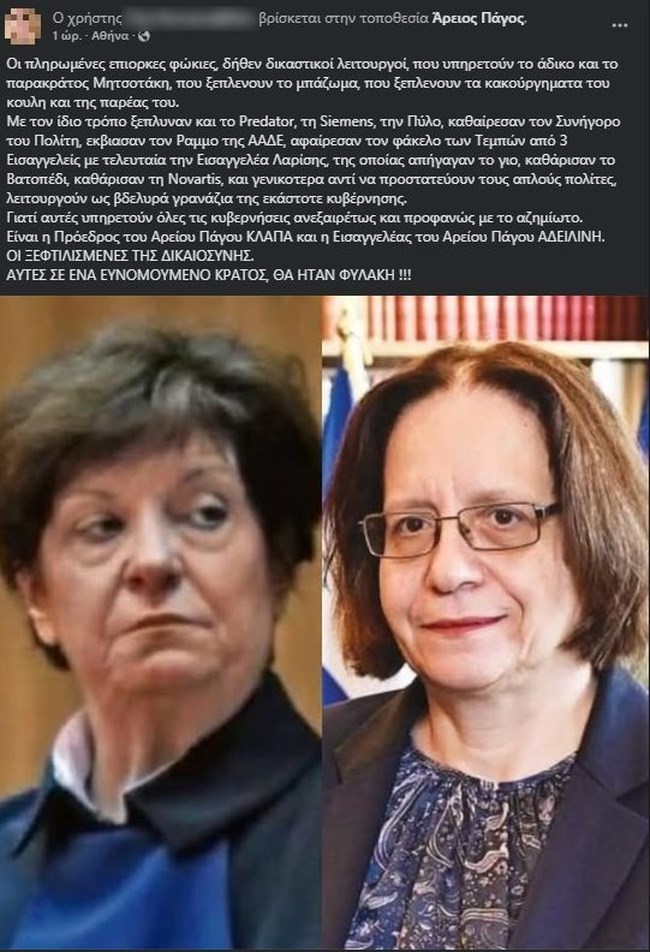 Αναλυτικά η ανάρτηση που προκάλεσε την επέμβαση του Αρείου Πάγου: