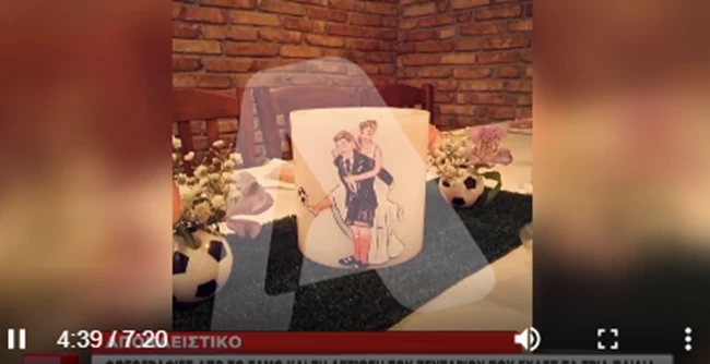 "Οι ευχές θα σας ακολουθούν ως το τέρμα", το μήνυμα που έγραφε η φωτογραφία σε τραπέζι της δεξίωσης.