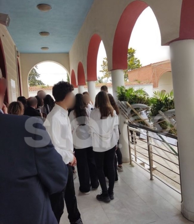 Φορώντας λευκά πανωφόρια αποχαιρετούν οι συμμαθητές της τη 15χρονη μαθήτρια.