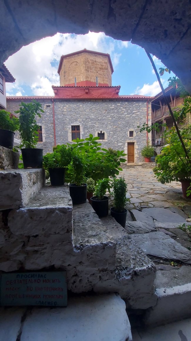 Εκεί, θα δοκιμάσετε το φημισμένο γλυκό τριαντάφυλλο που φτιάχνουν οι μοναχοί και να δείτε τη μοναδική θέα στη λίμνη από τον ξύλινο σκεπαστό εξώστη του Μοναστηριού.