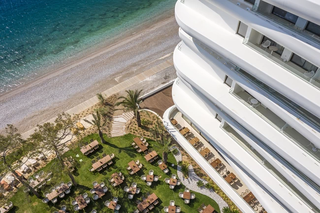 Το ξενοδοχείο βρίσκεται σε ένα καταπράσινο τοπίο με δύο παραλίες με ξαπλώστρες και ομπρέλες για να ευχαριστηθείς τα καταγάλανα νερά τους όλη την ημέρα.