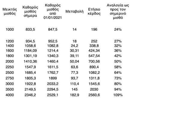 Ο πίνακας που συνοψίζει το κέρδος από τα δύο βασικά μέτρα που εξήγγειλε χθες ο πρωθυπουργός είναι ο εξής:
