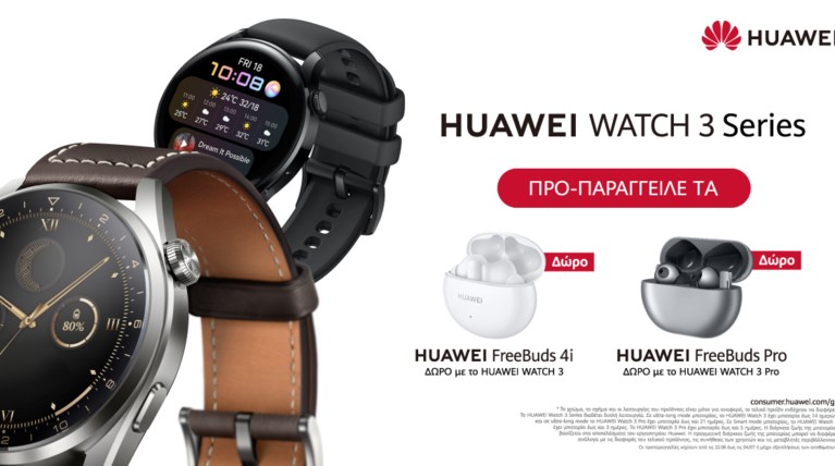To HUAWEI Watch 3 διατίθεται σε Active, Classic και Elite Edition στα καταστήματα: ΚΩΤΣΟΒΟΛΟΣ, ΠΛΑΙΣΙΟ, Public, MediaMarkt, WIND, Electronet, You.gr, WelcomeStores, Euronics και Expert Hellas από 22 Ιουνίου έως και 4 Ιουλίου, και μέχρι εξαντλήσεως των αποθεμάτων, με δώρο με δώρο τα wireless ακουστικά με Active Noise Cancelation HUAWEI FreeBuds 4i.