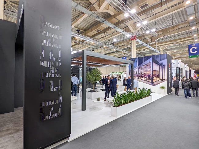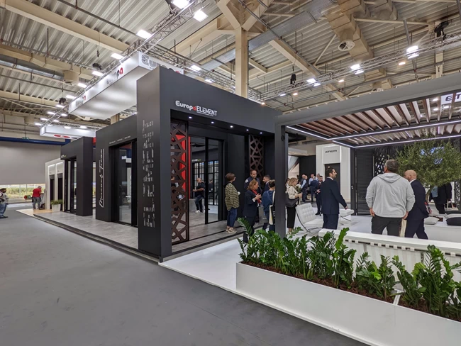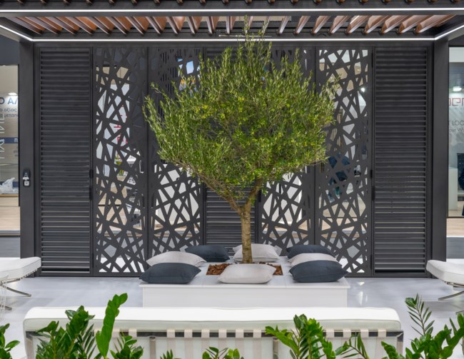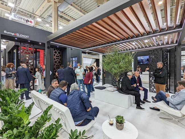 Στο περίπτερο της EUROPA συνδυάστηκε με το νέο σύστημα βιοκλιματικής πέργκολας EUROPA Pergola Bioclimatic σε πτυσσόμενη κατασκευή, συνδυασμού περσίδων και του EUROPA ELEMENT με εναλλαγές στα φύλλα του που κέντριζαν την προσοχή των επισκεπτών.