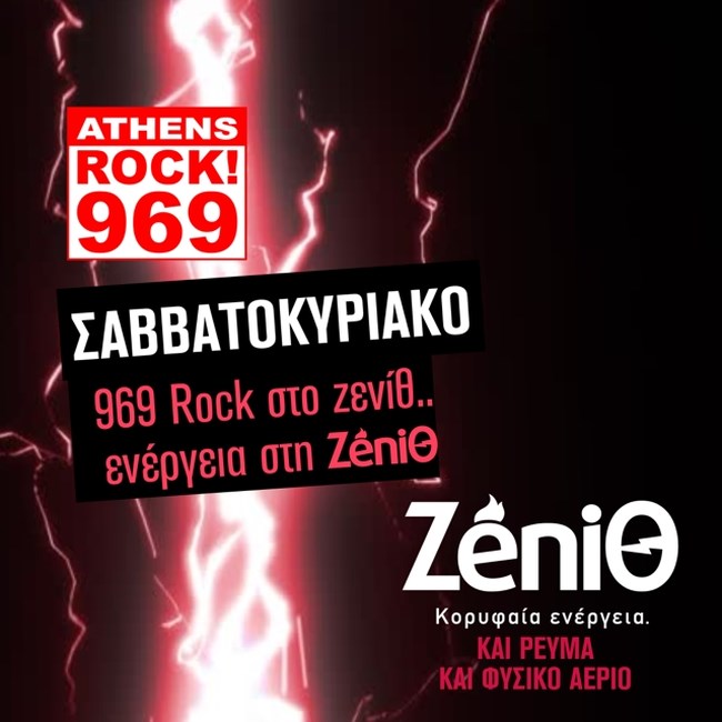 Η ΖeniΘ, ο 1ος πάροχος ολοκληρωμένης ενέργειας στην Ελλάδα, διευρύνει τη συνεργασία της με τον 969 Rock FM, τον νούμερο ένα rock σταθμό της Αθήνας. Η επιτυχημένη συνεργασία του ιστορικού ροκ ραδιοφωνικού σταθμού με την κορυφαία ομάδα ενέργειας μετρά αισίως πέντε χρόνια στο καθημερινό πρόγραμμα του σταθμού. Πλέον, ενισχύεται ακόμη περισσότερο, με τη ΖeniΘ να δίνει τη δική της ταυτότητα στη ραδιοφωνική ζώνη του Σαββατοκύριακου.