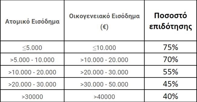 Ατομικό Εισόδημα Οικογενειακό Εισόδημα (€) Ποσοστό επιδότησης