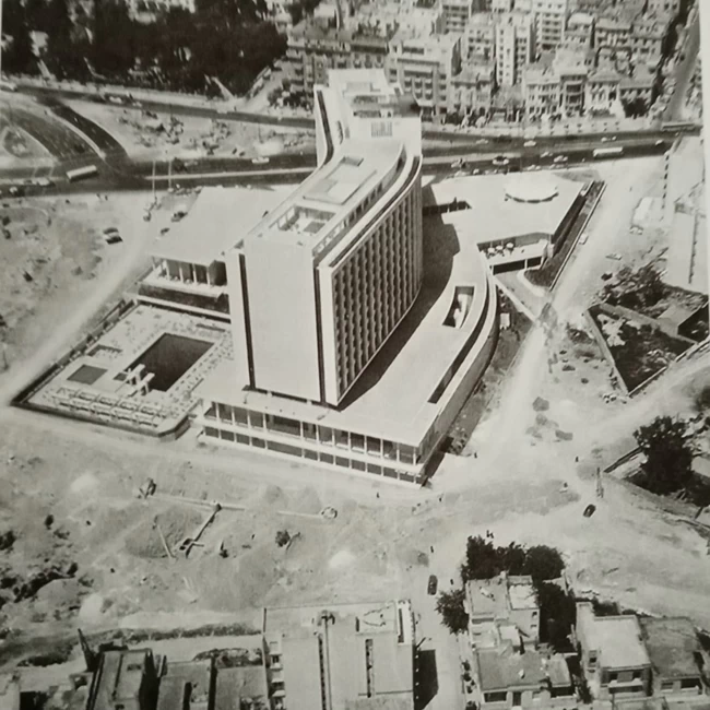 Το "Χίλτον" οικοδομήθηκε την περίοδο μεταξύ 1958-1963, μετά από μελέτη των αρχιτεκτόνων Εμμανουήλ Βουρέκα, Προκόπη Βασιλειάδη, Σπύρου Στάικου και Αντώνη Γεωργιάδη. Με την ανέγερσή του, σήμανε την είσοδο της χώρας στην παγκόσμια τουριστική αγορά πολυτελείας, αποτελώντας και το ίδιο ένα σύμβολο της οικονομικής, πολιτιστικής και κοινωνικής εξέλιξης της εποχής.