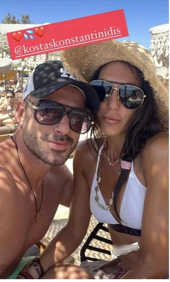 Στη φωτογραφία που δημοσίευσε η Ανθή Βούλγαρη τη είδαμε να ποζάρει στην αγκαλιά του συζύγου της Κώστα Κωνσταντινίδη φορώντας λευκό μπικίνι και καπέλο.