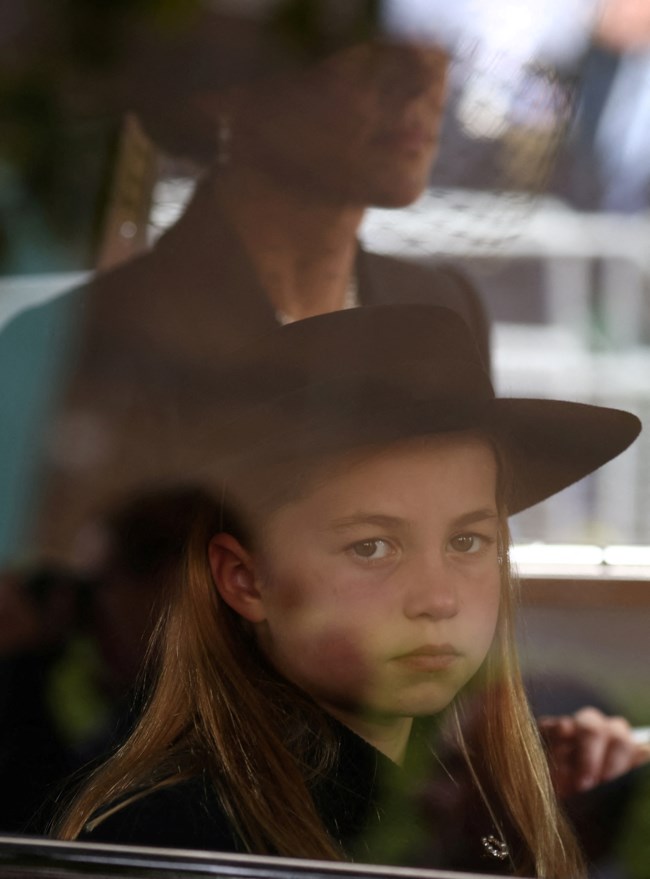 Αν και μόλις 7 ετών, η Σάρλοτ φαίνεται πως μπήκε από μικρή στα βάσανα και τήρησε το πρωτόκολλο φορώντας ολόμαυρα ρούχα, μαύρο καλσόν και παπούτσια, ακόμα και καπέλο για την ημέρα της κηδείας.