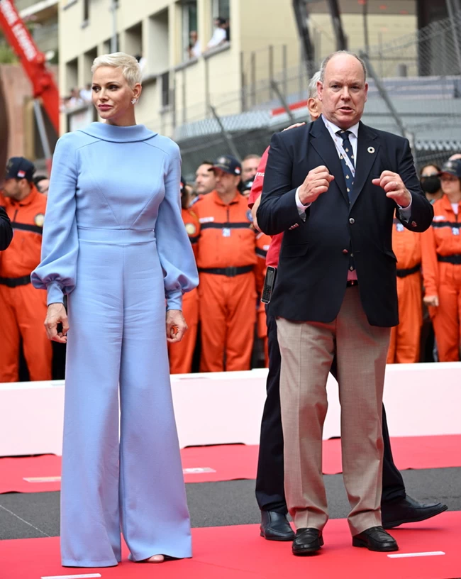 Η 44χρονη πριγκίπισσα Σαρλίν φόρεσε ένα ροζ σύνολο Αkris καθώς πόζαρε δίπλα στον που αποτελείται από δύο κομμάτια.