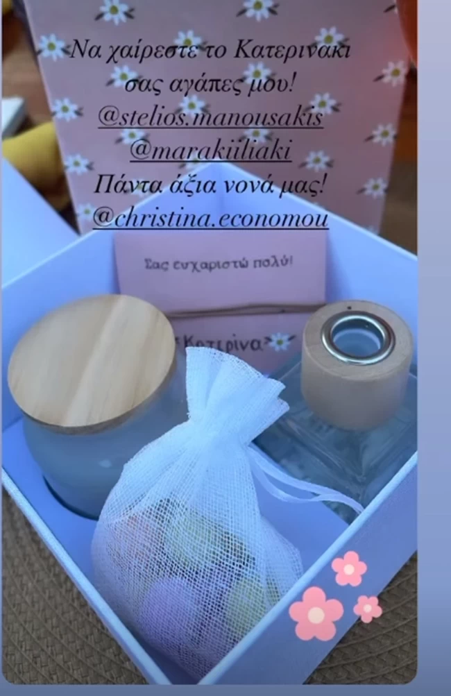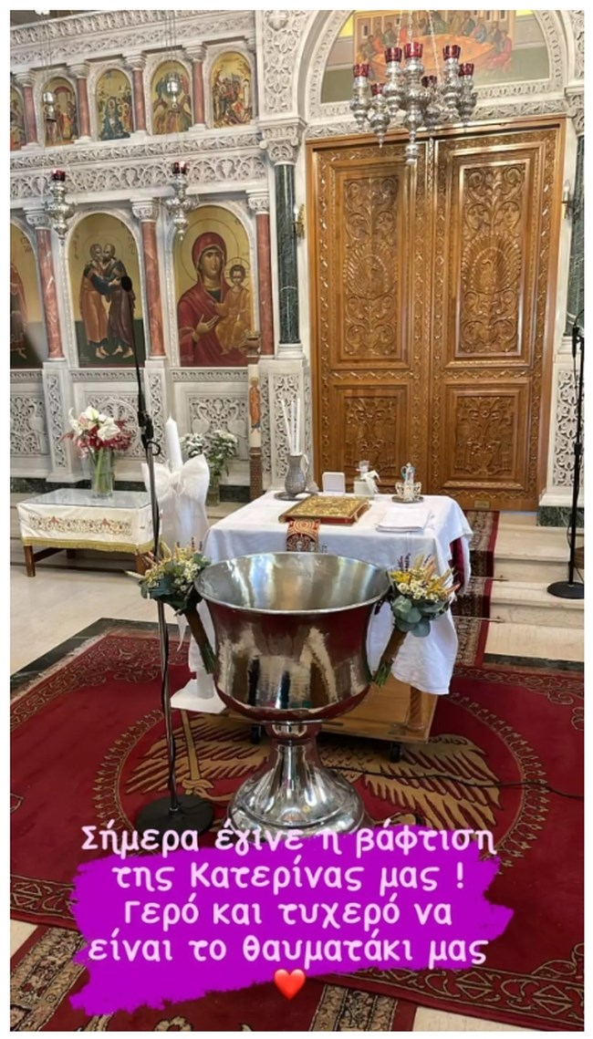 " Το όνομα Κατερίνα είναι από την πεθερά μου. Δεν έδωσα το όνομα της μητέρας μου γιατί σκέφτηκα ότι η μαμά μου δεν ζει για να το ακούσει, οπότε ας χαρεί η άλλη γιαγιά που ζει και μπορεί να το ακούσει", συνέχισε η ίδια σχετικά με την απόφαση που πήρε με τον σύζυγό της να βγάλουν την κόρη τους Κατερίνα.
