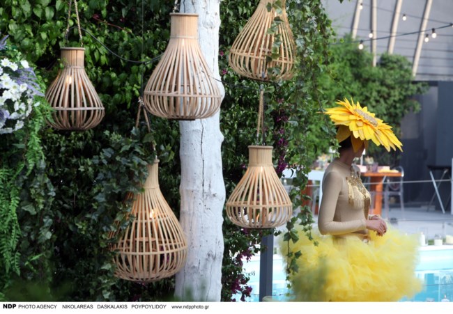 Στον χώρο υπήρχαν γυναίκες ντυμένες λουλουδια.