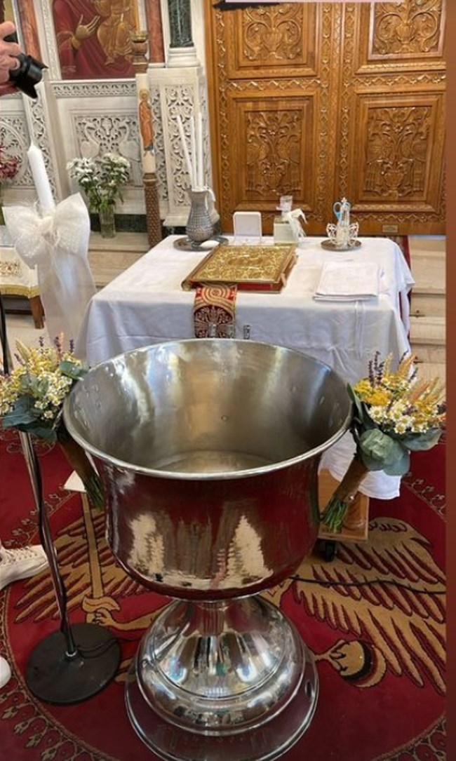 Η Ηλιάκη δημοσίευσε λίγες φωτογραφίες, όπου είδαμε τον λιτό στολισμό της κολυμπήθρας με δύο μπουκέτα από καλοκαιρινά άνθη.