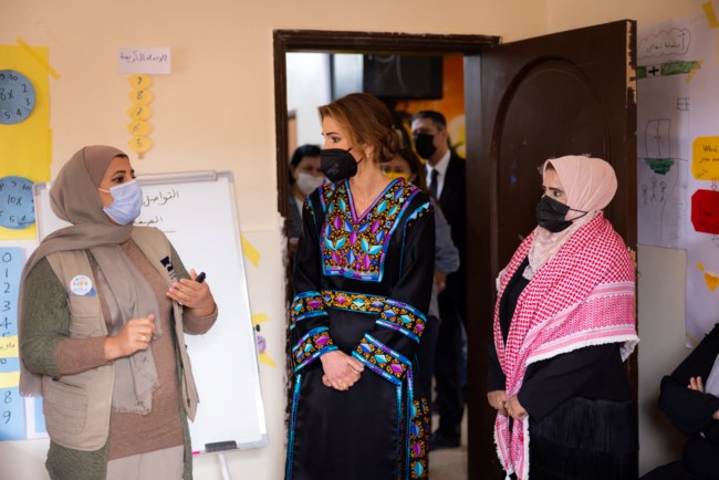 Σε αυτή την εμφάνιση, η βασίλισσα Ράνια της Ιορδανίας φόρεσε ένα κεντημένο παραδοσιακό παλαιστινιακό φόρεμα.