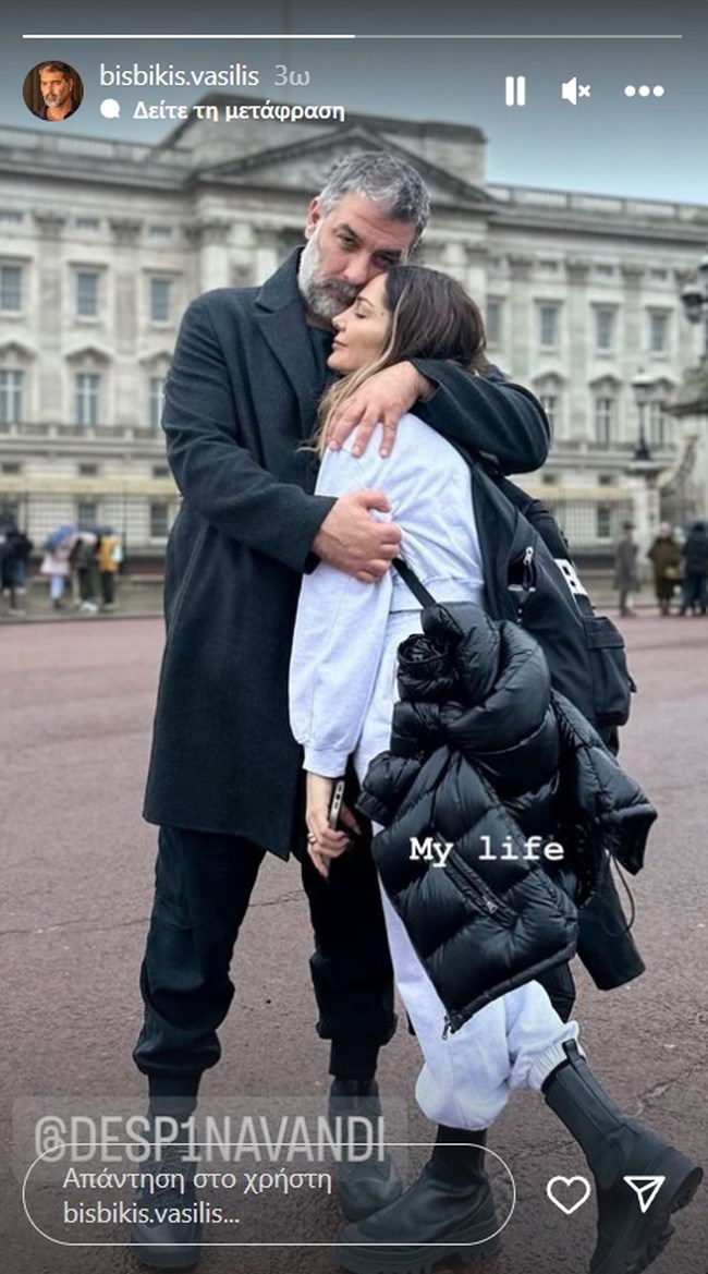 Σήμερα, ο Βασίλης Μπισμπίκης "ανέβασε" στα social media μία κοινή φωτογραφία με τη Δέσποινα Βανδή: το ζευγάρι είναι αγκαλιά, με την τραγουδίστρια να έχει κλειστά τα μάτια της. "Ζωή μου" έγραψε στη λεζάντα της ανάρτησης ο ηθοποιός, με το επίμαχο στιγμιότυπο να αναδημοσιεύεται και στα social media της τραγουδίστριας.